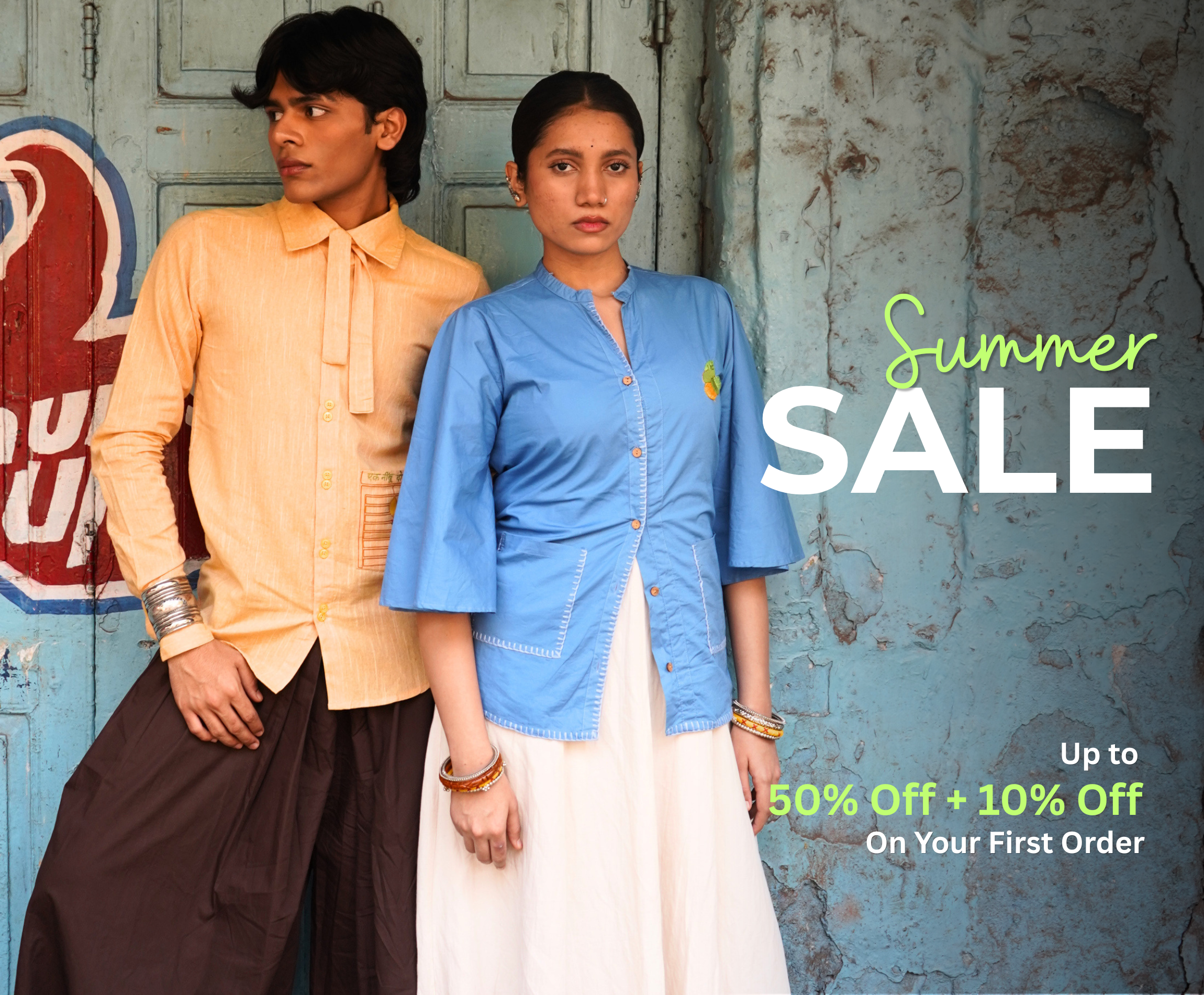 A collection born from the heart of Rajasthan — its arches, doors, peacocks, and palace guards. Crafted in 100% handwoven khadi, Mehrab brings together the warmth of tradition and the joy of storytelling. Every piece is touched by hand — with delicate embroidery, mirror work, and artful details that reflect the spirit of our heritage. Rooted in culture and craftsmanship, Mehrab feels like a walk through old palaces, where every corner has a story to tell.