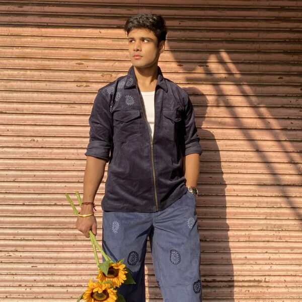 Our classic Navy Blue Corduroy Jacket is all about timeless style with an artful twist. Crafted from 100% cotton corduroy, it features a relaxed silhouette that’s both comfortable and versatile. Intricate block-printed details on the front and back add a touch of tradition, while the hand-painted ‘बी’ on the back makes it a true statement piece. Unisex and effortlessly stylish, it pairs perfectly with our cord pants for a sleek, coordinated set that never goes unnoticed.